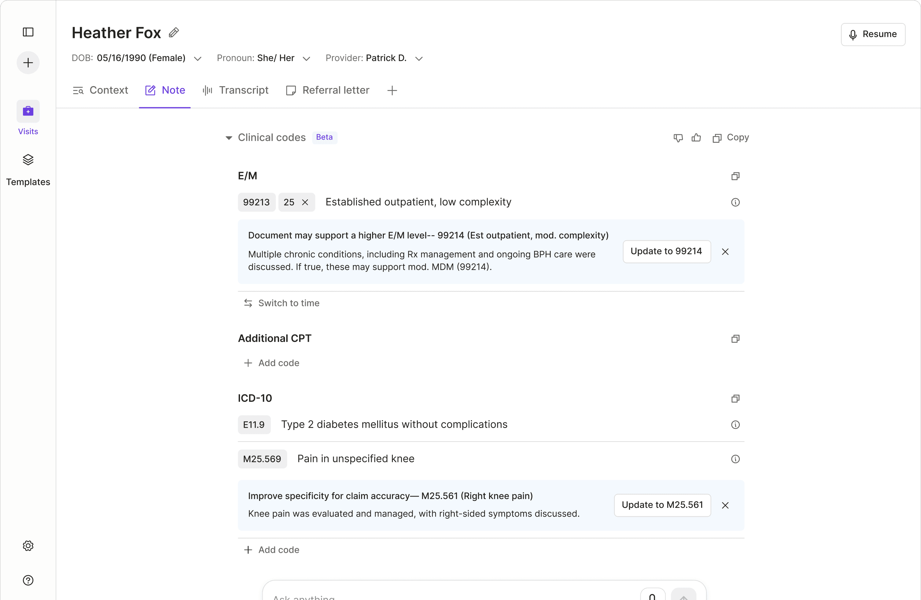 Coding Pro: Capturing & optimizing for clinical codes from notes